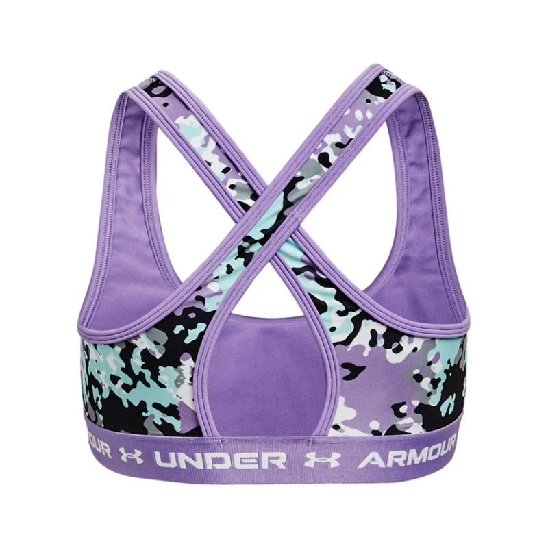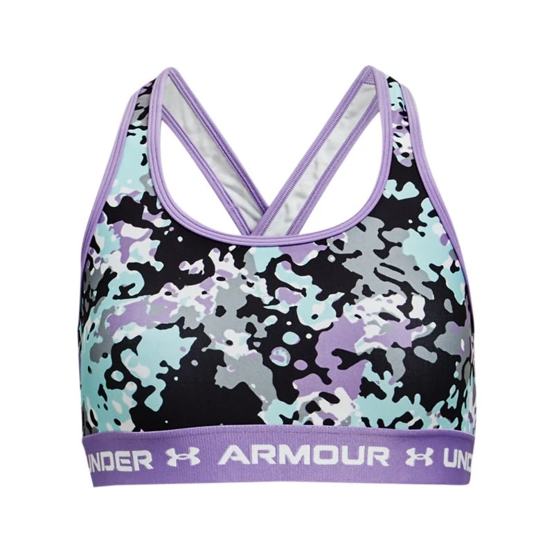 The Girls Under Armour Crossback Printed Sports Bra wicks sweat away from the body and stretches so you can move without restrictions.
